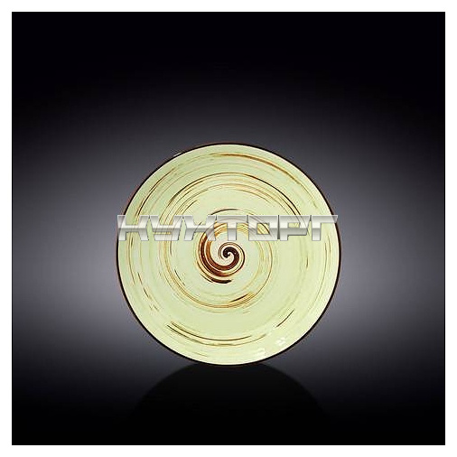 Круглая тарелка Wilmax WL-669112 / A отличается высокой прочностью, выдерживает значительные перепады температур, что позволяет использовать ее в духовых шкафах, микроволновых печах и в посудомоечной машине. Изделие выполнено из высококачественного цветного фарфора с узором в виде спиралей.