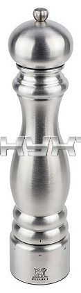 Мельница Peugeot Paris Chef u'Select 32517 используется на предприятиях общественного питания и торговли, а также в домашних условиях для измельчения перца в виде горошка для последующего добавления его в блюда. Жернова приводятся в движение путем вращения интегрированной в корпус съемной крышки-рукоятки относительно вертикальной оси. Фиксация крышки осуществляются с помощью расположенной на вершине гайки-колпачка. Модель оснащена запатентованной системой регулировки степени помола u'Select с 6 заводскими уровнями и множеством промежуточных вариантов. Компактный изящный корпус выполнен из нержавеющей стали, ось и гайка – из металла, измельчитель – из закаленной стали высокой твердости, устойчивой к коррозии и затуплению.