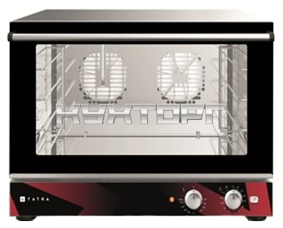 Конвекционная печь Tatara TO46MIHS предназначена для выпекания или разогрева кондитерских и хлебобулочных изделий, готовых блюд, замороженных или предварительно выдержанных в расстоечном шкафу заготовок из теста на предприятиях общественного питания и торговли. Модель оснащена электромеханической панелью управления и 2 реверсивными вентеляторами. Корпус и камера выполнены из нержавеющей стали, двойная дверца - из закаленного стекла.
