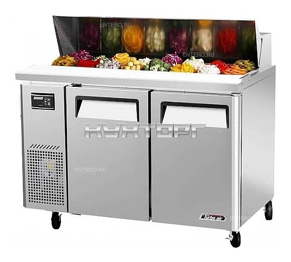 Холодильный стол Turbo air KHR12-2-750 используется на предприятиях общественного питания и торговли для обработки ингредиентов, используемых для приготовления сэндвичей, охлаждения и кратковременного хранения продуктов. Модель оснащена 2 дверцами с эргономичными ручками, 2 полками и 4 колесами. Корпус выполнен из нержавеющей стали (гальванизированная сталь на оборотной стороне и внизу), пол - из нержавеющей стали с алюминевыми вставками по бокам и сзади, дверные петли - из нержавеющей стали, полки - из толстой стальной проволоки с виниловым покрытием, разделочная доска - из пищевого полиэтилена LDPE, уплотнение - из ABS пластика.