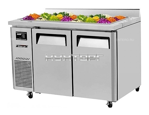 Холодильный салат-бар Turbo air KSWR12-2-750 предназначен для кратковременного хранения ингредиентов для приготовления салатов на предприятиях пищевой промышленности, общественного питания и торговли. Модель оснащена 2 дверцами с эргономичными ручками, 2 регулируемыми полками и 4 колесами. Корпус выполнен из нержавеющей стали (гальванизированная сталь на оборотной стороне и внизу), пол - из нержавеющей стали с алюминиевыми вставками по бокам и сзади, дверные петли и направляющие для гастроемкостей - из высококачественной нержавеющей стали, полки - из толстой стальной проволоки с виниловым покрытием, уплотнение - из ABS-пластика.