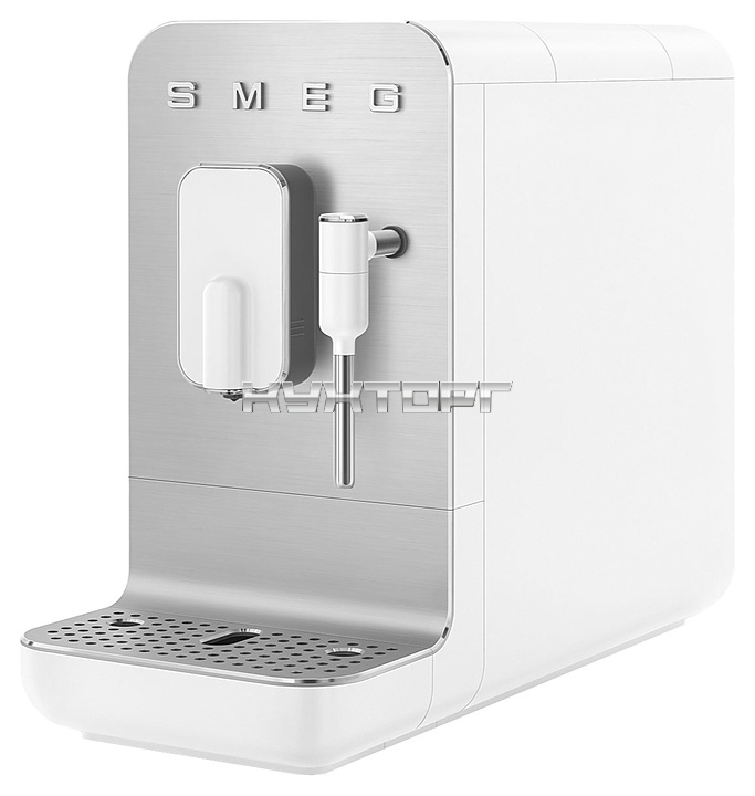 Автоматическая кофемашина SMEG BCC02WHMEU предназначена для приготовления эспрессо и кофейных напитков на его основе на предприятиях общественного питания и торговли, в офисах, гостиницах, а также домашних условиях. Модель оснащена подставкой для чашек с поддоном для сбора капель, съемными заварочным блоком, контейнером для кофейной гущи и резервуаром для воды с дополнительным фильтром, а также удобной кнопочной панелью управления и кабелем питания. Корпус, диспенсер и ручка емкости выполнены из прочного пластика, фронтальная панель и держатель для чашек – из алюминия с матовой поверхностью и полированной окантовкой, капучинатор – из нержавеющей стали.
