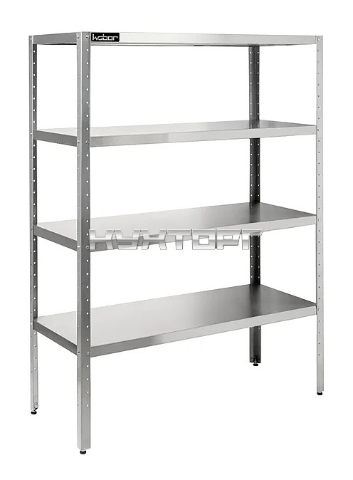 Стеллаж Кобор SALE СКН-60/40 предназначен для хранения посуды, кухонной утвари и сухих продуктов на предприятиях общественного питания, торговли и в промышленно-производственных помещениях. Каждая полка имеет 1 усилитель по длине. Каркас выполнен в виде уголка 40х40 мм из оцинкованной стали толщиной 0,8 мм, полки - из нержавеющей стали AISI 430 толщиной 0,8 мм.
