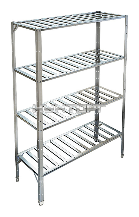 Кухонный стеллаж Техно-ТТ СТР-254/606 предназначен для хранения посуды, различного инвентаря и сухих продуктов на предприятиях общественного питания и торговли. Модель оснащена регулируемыми по высоте полками и ножками, что позволяет компенсировать неровности пола. Разборный каркас выполнен из уголка 40х20 мм нержавеющей стали AISI 430 толщиной 1,2 мм, решетчатые полки - из нержавеющей стали AISI 304 толщиной 0,8 мм.