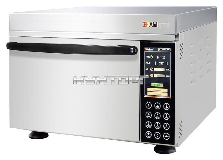 Гибридная печь Atollspeed AS300T plus предназначена для приготовления, разогрева и размораживания широкого спектра продуктов и блюд на предприятиях общественного питания и торговли. Модель оснащена цветным сенсорным стеклянным дисплеем и каталитическим фильтром. Камера выполнена из нержавеющей стали.
