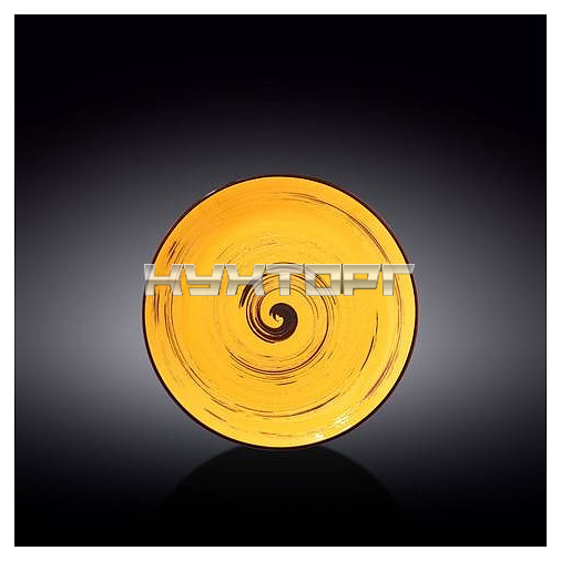 Круглая тарелка Wilmax WL-669412 / A отличается высокой прочностью, выдерживает значительные перепады температур, что позволяет использовать ее в духовых шкафах, микроволновых печах и в посудомоечной машине. Изделие выполнено из высококачественного цветного фарфора с узором в виде спиралей.