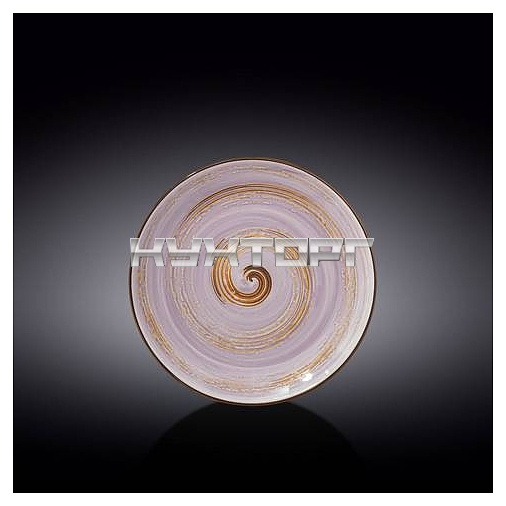 Круглая тарелка Wilmax WL-669712 / A отличается высокой прочностью, выдерживает значительные перепады температур, что позволяет использовать ее в духовых шкафах, микроволновых печах и в посудомоечной машине. Изделие выполнено из высококачественного цветного фарфора с узором в виде спиралей.