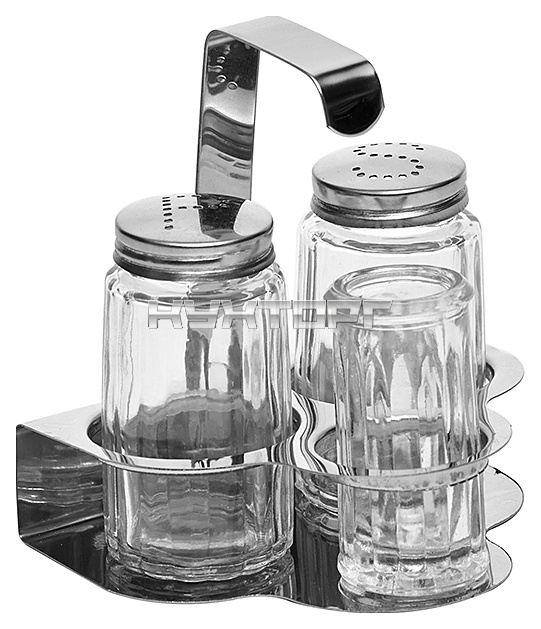 В набор входят солонка, перечница, стакан для зубочисток и подставка.