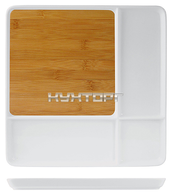Блюдо ProHotel CZ131061W используется на предприятиях общественного питания и торговли, в частных домах и квартирах для сервировки и подачи различных блюд на стол. Изделие выполнено из бамбука и фарфора.