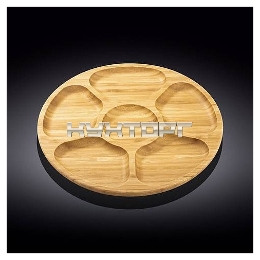 Блюдо Wilmax WL-771227 / A предназначено для сервировки и подачи различных блюд в барах, ресторанах и кафе. Модель имеет круглую форму и разделена на 6 секций. Изделие выполнено из прочного и экологически чистого материала - натурального бамбука.