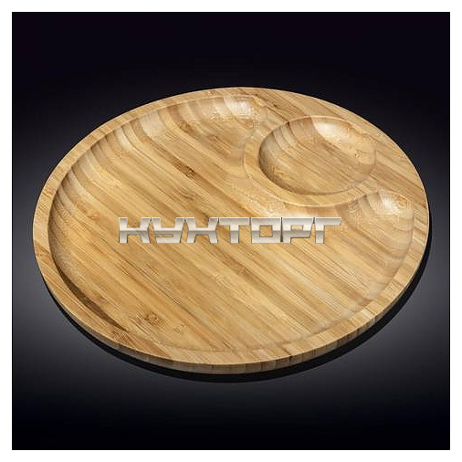 Блюдо Wilmax WL-771201 / A предназначено для сервировки и подачи различных блюд в барах, ресторанах и кафе. Модель имеет круглую форму и разделена на 2 секции. Изделие выполнено из прочного и экологически чистого материала - натурального бамбука.