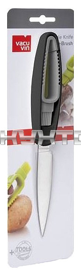 Нож VacuVin 4662360 с щеткой 2в1 используется на предприятиях общественного питания и торговли, а также в домашних условиях для чистки овощей и тщательного их мытья перед приготовлением с помощью щетки, которая хранится в рукоятке. Лезвие ножа выполнено из нержавеющей стали.