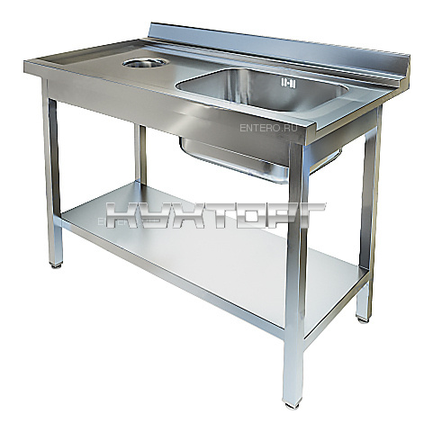 Приставной к посудомоечной машине стол Техно-ТТ СПО-533/1207Л/ЛевКр используется на предприятиях общественного питания и торговли для мытья и ополаскивания посуды и различного инвентаря. Модель оснащена отверстием для сбора отходов, расположенным слева, моечной ванной справа, сплошной полкой и регулируемыми по высоте ножками, что позволяет компенсировать неровности пола. Разборный каркас выполнен из трубы 40х40 нержавеющей стали AISI 430, цельнотянутая мойка, полка и столешница - из нержавеющей стали AISI 304.