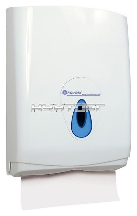 Диспенсер Merida MAXI TOP ATN101 предназначен для гигиеничного размещения и дозированной подачи отдельных листов бумажных полотенец в общественных санитарных узлах гостиниц, предприятий общепита, медицинских учреждений и других мест массового пребывания. Модель оснащена окошком индикации в виде синей капли для контроля наличия полотенец. Корпус изготовлен из ударопрочного АБС-пластика.