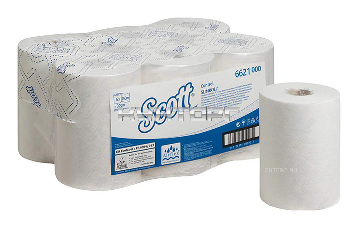 Бумажные полотенца Kimberly-Clark Scott Controll Slimroll 6621 предназначены для использования с диспенсерами для рулонных бумажных полотенец в общественных санитарных узлах офисов, предприятий общепита, медицинских учреждений и других мест большой проходимости. Полотенца изготовлены из 50% целлюлозы и 50% переработанной целлюлозы.