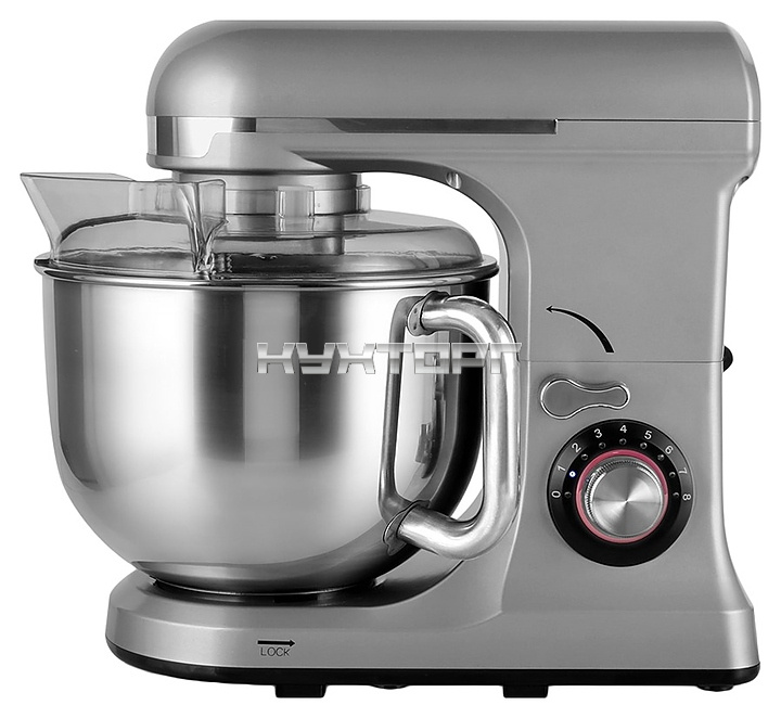 В комплект поставки входят съемная дежа и 3 насадки: венчик, лопатка и крюк.