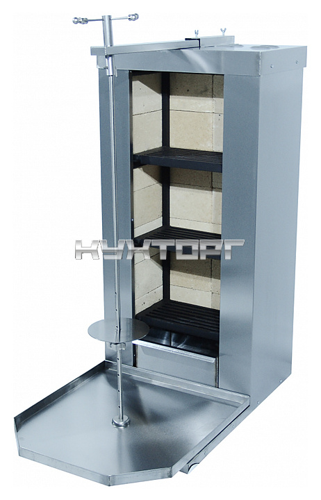 Угольный гриль для шаурмы Grill Master 11315 предназначен для запекания специально подготовленного свиного, говяжьего, бараньего и куриного мяса, используемого для приготовления шаурмы, на предприятиях общественного питания и торговли. Модель оснащена 3 зонами нагрева, подом, сводом, лотком для сбора жира и вертикальным шампуром. Все корпусные элементы выполнены из нержавеющей стали, колосники - из чугуна, боковые стенки отделаны огнеупорным кирпичем.
