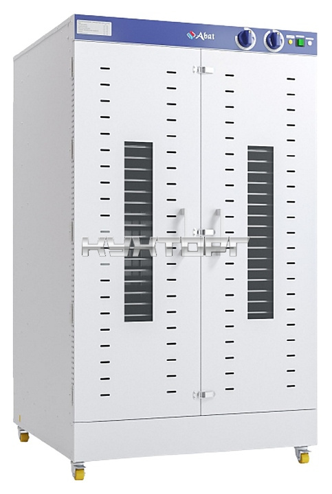 Дегидратор Abat ШС-32-2Г-03 предназначен для сушки трав, фруктов, овощей, ягод, макаронных изделий, мясных продуктов, приготовления пастилы и йогурта на предприятиях общественного питания и торговли. Модель оснащена электромеханической панелью управления, механическим таймером времени и функцией отключения работы, ТЭН-ами различной мощности, 8 вентиляторами и колесами с функцией стопорения. Корпус выполнен полностью из нержавеющей стали.