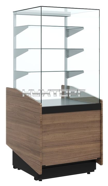 Кондитерская витрина Carboma KC80 N 1,2-21 BORNEO 2 используется на предприятиях общественного питания и торговли для демонстрации и кратковременного хранения продукции, не требующей определенного температурного режима. Зона выкладки выполнена из шлифованной нержавеющей стали, внешние панели – из ламинированной древесноволокнистой плиты средней плотности (МДФ), нижняя облицовка и профиль под стекло – из стали с покрытием черной краской (RAL 9005), верхние стойки – из легкого полиметилметакрилата (ПММА) высокой степени прозрачности, каркасные стойки – из профиля нержавеющей стали, полки – из стекла, термоизоляция – из пенополиуретана.