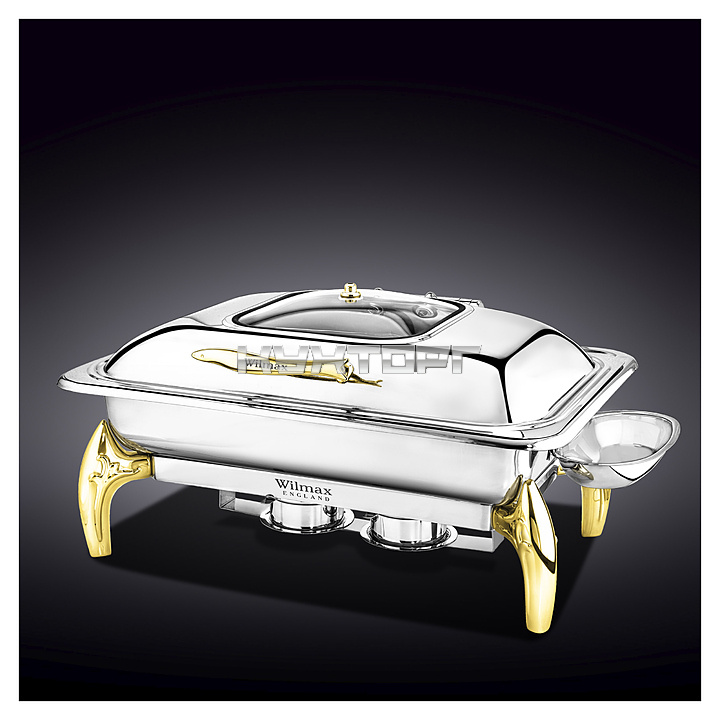 Мармит Wilmax WL-559923/AB предназначен для поддержания в горячем состоянии широкого спектра блюд на предприятиях общественного питания и торговли, а также в местах без доступа к электросети. Модель оснащена подставкой и прозрачной крышкой. Корпус и подставка выполнены из высококачественной нержавеющей стали 18/10, крышка - из закаленного стекла.