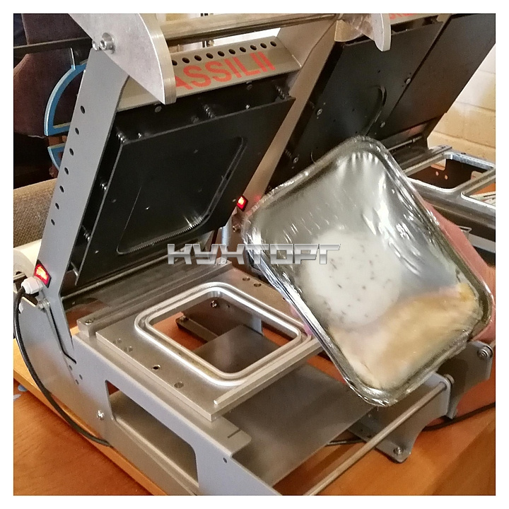 - Одновременно производит запайку и обрезку пленки по контуру лотка 187х137 мм