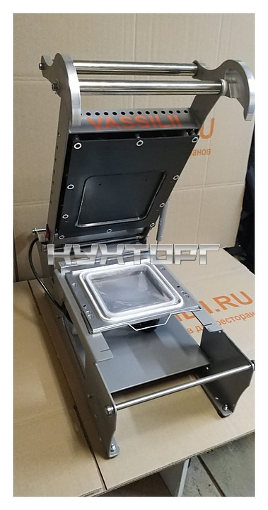 Ручной запайщик лотков VASSILII Контур используется на предприятиях общественного питания и торговли для вакуумной упаковки контейнеров с готовыми продуктами или полуфабрикатами. Модель работает с полипропиленом, полистиролом, ПЭТ, картоном, алюминием и прочими материалами. Конструкция выполнена из металла, покрытие нагревающейся поверхности - из тефлона.