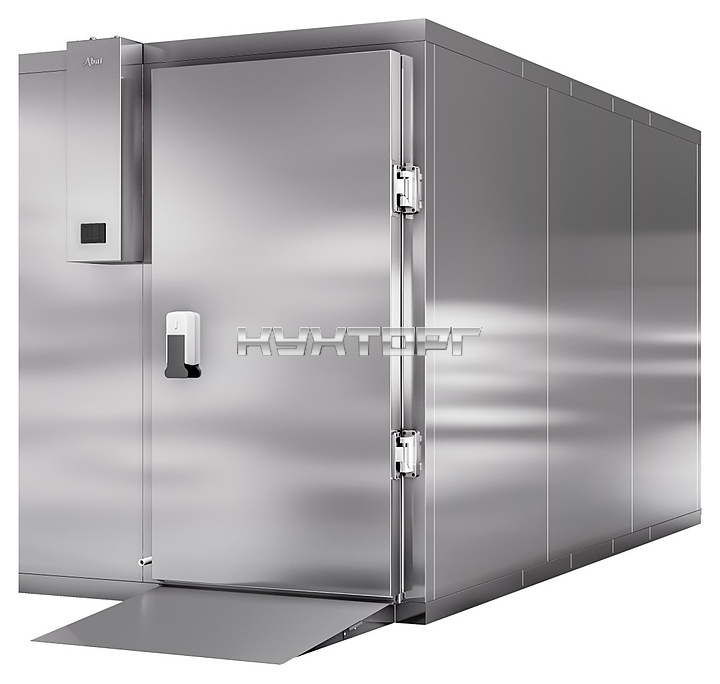 Камера шоковой заморозки Abat ШОКК-203 предназначена для быстрого охлаждения и замораживания различных пищевых продуктов и полуфабрикатов для дальнейшего их хранения на низкотемпературных складах предприятий общественного питания. Модель оснащена 3 воздухоохладителями с 2 вентиляторами каждый, навесными дверьми с низкотемпературным уплотнителем, подогревом и двусторонним замком. Пандусы и пол камеры выполнены из рифленого нержавеющего листа, стенки и потолок - сендвич-панели из высококачественной нержавеющей стали толщиной 80 мм.