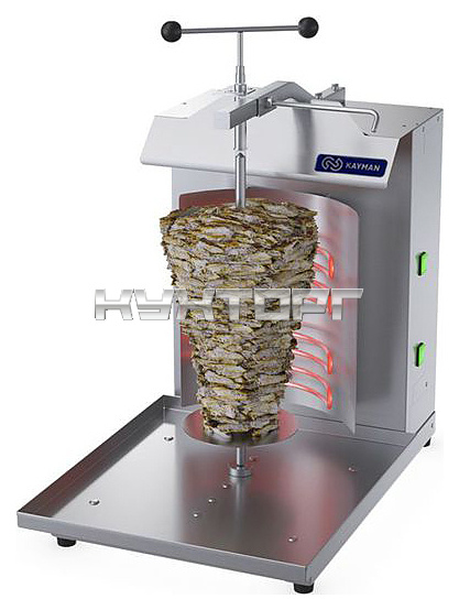 Электрический гриль KAYMAN ШЭ-ОЦ-2-РП А используется на предприятиях общественного питания и торговли для приготовления мясной начинки популярного блюда шаурма (шаверма). Модель оснащена 2 изогнутыми ТЭНами, отражателями тепла и защитным козырьком, препятствующим обжиганию рук и перегреву электропривода. Корпус выполнен из нержавеющей стали, все элементы, контактирующие с пищей - из материалов, разрешенных для контакта из нержавеющей стали.