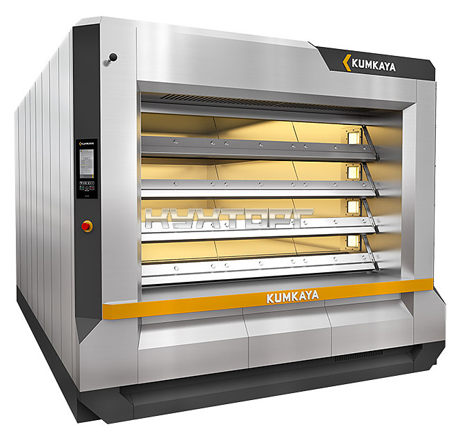 Паротрубная подовая печь Kumkaya BR 100 G используется на предприятиях пищевой промышленности и в пекарнях для выпечки хлебобулочных и кондитерских изделий. Модель оснащена термостойкой паронепроницаемой цифровой панелью управления, двойным предохранительным термостатом и 8 дверцами (по 2 на каждую камеру), открывающимися независимо друг от друга. Боковые панели и фасад выполнены из нержавеющей стали AISI 304, боковые и задняя стенки укреплены мозаичным бетоном, камера сгорания выложена огнеупорным кирпичом, дверцы - из жаропрочного стекла, подовый камень - укрепленный нержавеющей сталью, теплоизоляция - из стекловолокна.