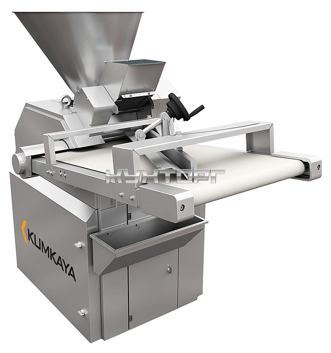 Однопоршневой тестоделитель-округлитель Kumkaya DM 2200 AK P предназначен для деления тестовых заготовок на порции на предприятиях общественного питания и торговли. Модель оснащена регулируемой вакуумной камерой, очистителем ленты, контейнером для сбора муки и колесами, облегчающими передвижение. Корпус, бункер и конвейер выполнены из нержавеющей стали.