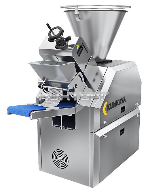 Однопоршневой тестоделитель Kumkaya DMF 1000 P предназначен для деления тестовых заготовок на порции на предприятиях пищевой промышленности, общественного питания и торговли. Модель оснащена регулируемой вакуумной камерой, сенсорной панелью управления, очистителем ленты и колесами, облегчающими передвижение. Корпус, бункер и конвейер выполнены из нержавеющей стали.