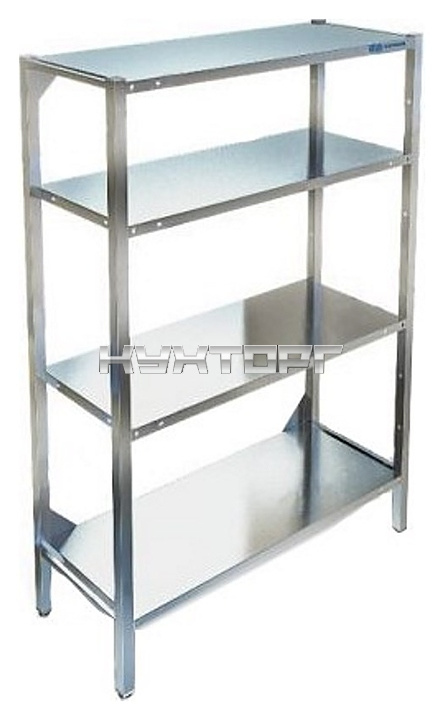 Кухонный стеллаж KAYMAN СК-221/1204 используется на предприятиях общественного питания и торговли, а также в промышленно-производственных заведениях для хранения различного оборудования, кухонных принадлежностей и сухих продуктов. Модель оснащена регулируемыми ножками. Стойки изготовлены из нержавеющей трубы 40х40 мм, полки - из нержавеющей стали AISI 430 толщиной 0,8 мм.