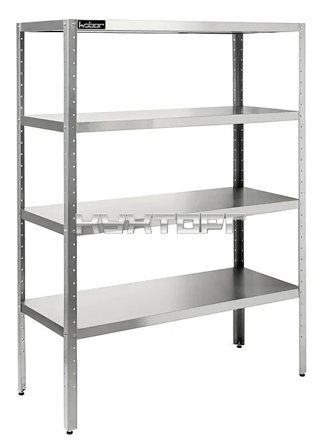 Стеллаж Кобор СК-140/40/430 предназначен для хранения посуды, кухонной утвари и сухих продуктов на предприятиях общественного питания, торговли и в промышленно-производственных помещениях. Каркас выполнен в виде уголка 40х40 мм из нержавеющей стали, полки - из нержавеющей стали AISI 430. Уникальная система крепления полок, обеспечивает жёсткость конструкции стеллажа.