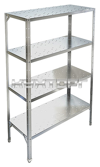 Кухонный стеллаж KAYMAN СК-451/0905 используется на предприятиях общественного питания и торговли, а также в промышленно-производственных заведениях для хранения различного оборудования, кухонных принадлежностей и сухих продуктов. Каркас выполнен из оцинкованного уголка 40х40 мм, полки - из нержавеющей стали AISI 430.