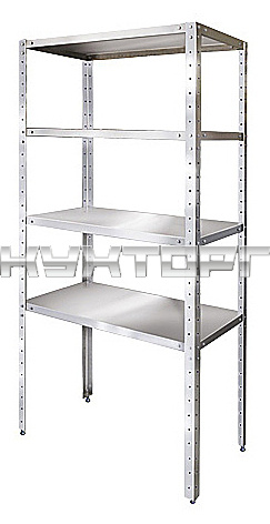 Стеллаж ITERMA СТС 21-1005 Ш430 предназначен для хранения посуды, кухонной утвари и сухих продуктов на предприятиях общественного питания и торговли. Модель оснащена ножками, регулирующимися по высоте. Разборный каркас выполнен из окрашенного уголка из углеродистой стали, полки, усиленные ребром жесткости, - из нержавеющей стали AISI 430.