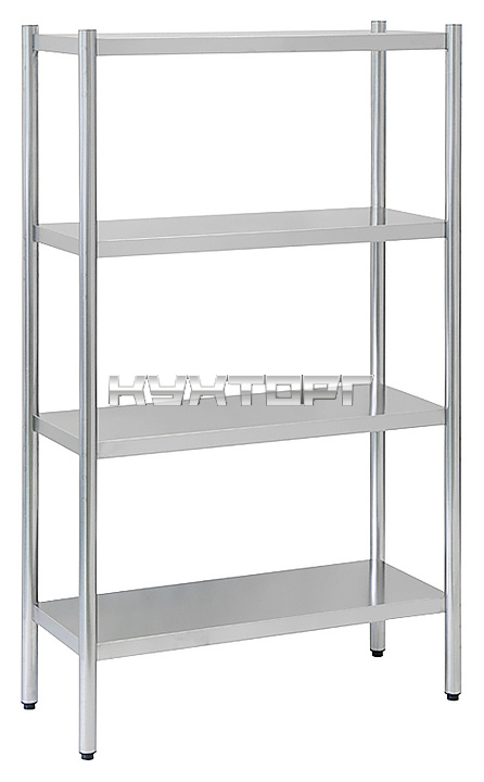 Кухонный стеллаж ATESY СТК-П- 900.500.1600-02 серии Престиж предназначен для хранения посуды, различного инвентаря и сухих продуктов на предприятиях общественного питания и торговли. Модель оснащена 4 полками и 4 стойками. Сплошные полки выполнены из пищевой нержавеющей стали AISI 430 толщиной 0,8 мм, каркас - из зеркальной нержавеющей стали AISI 201 толщиной 1,5 мм, опора ножек - из пластика.