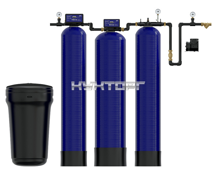 Комплексная система SiberianAqua VK1500 Runxin AS-19 используется в частных домах и коттеджах для очистки воды от сероводорода, железа, марганца, солей жесткости и механических примесей, а также насыщения обрабатываемой воды кислородом. Система работает на электронных русифицированных клапанах управления Runxin и позволяет исключить обширный спектр загрязнений воды. Корпуса фильтров, соляных фидеров и все контактирующие с водой элементы управления выполнены из полимерных материалов пищевого класса.