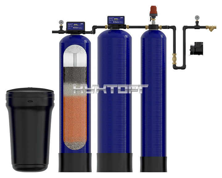 - Регенерация фильтра не требует использования реагентных материалов и производится в автоматическом режиме с помощью электронного управляющего клапана по сигналу таймера