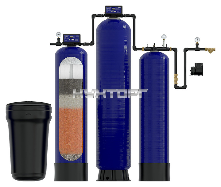Комплексная система WiseWater VKX 2500 Runxin AS-19 используется в частных домах и коттеджах для очистки воды от сероводорода, железа, марганца, солей жесткости и механических примесей, а также насыщения обрабатываемой воды кислородом. Система работает на электронных русифицированных клапанах управления и позволяет исключить обширный спектр загрязнений воды. Корпуса фильтров, соляных фидеров и все контактирующие с водой элементы управления выполнены из полимерных материалов пищевого класса.