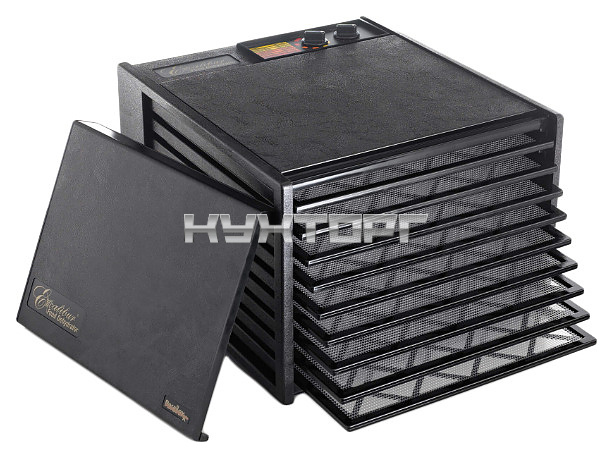 Дегидратор Excalibur 4926T220G предназначен для сушки овощей, фруктов, ягод, орехов, грибов и трав, расстойки теста, приготовления йогурта, сыра, вяления мяса и рыбы на предприятиях общественного питания и в домашних условиях. Модель оснащена расположенными в задней стенке нагревательным элементом и вентилятором, электронным термостатом, съемной дверцей и панелью управления с 2 поворотными регуляторами. Лотки выполнены из высококачественного поликарбоната без содержания бисфенола А (BPA).