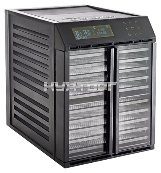 Дегидратор Excalibur RES10F предназначен для сушки овощей, фруктов, ягод, орехов, грибов и трав, расстойки теста, приготовления йогурта, вяления мяса и рыбы на предприятиях общественного питания и в домашних условиях. Модель оснащена расположенными в задней стенке 2 нагревательными элементами и 2 вентиляторами, 2 электронными термостатами, распашными дверьми и сенсорной панелью управления с жидкокристаллическим дисплеем. Лотки выполнены из высококачественного поликарбоната без содержания бисфенола А (BPA).