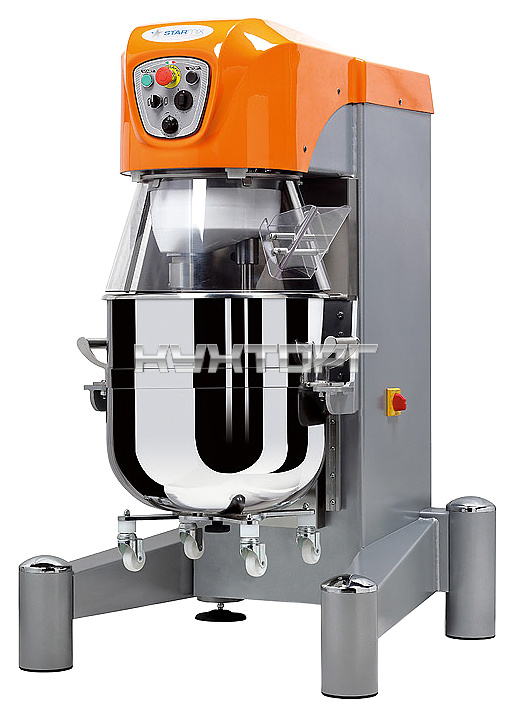 Напольный планетарный миксер Starmix PL80N3AF+CARPL80-120 предназначен для взбивания кондитерских масс: кремов, суфле, муссов, а также бисквитного, дрожжевого, песочного, блинного, заварного теста на предприятиях общественного питания и торговли, в пекарнях и кондитерских. Модель оснащена электромеханической панелью управления. Корпус выполнен из окрашенного металла, защитный кожух - из пластика.