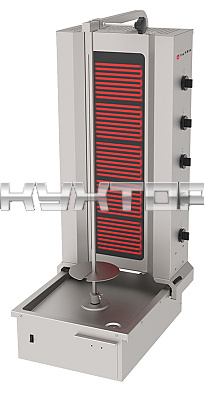 Гриль для шаурмы Tatra TDM E 5BW предназначен для обжарки большого количества различных видов мяса и птицы при приготовлении начинки из рубленного мяса для шаурмы и других блюд на предприятиях общественного питания и торговли. Модель оснащена электромеханической панелью управления, нижним приводом вращения вертела и емкостью для сбора жира. Корпус выполнен из нержавеющей стали.