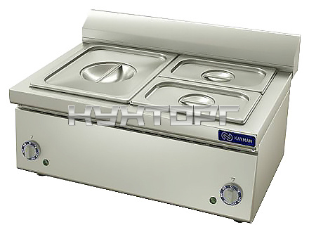 Мармит KAYMAN МЭ-С-02 А используется на предприятиях общественного питания и торговли для поддержания в горячем состоянии гастроемкостей со вторыми блюдами, гарнирами и соусами. Модель оснащена ванной с 2 ТЭНами, 2 терморегуляторами и съемной перемычкой из нержавеющей стали для установки гастроемкостей меньшего размера. Корпус выполнен из пищевой нержавеющей стали.