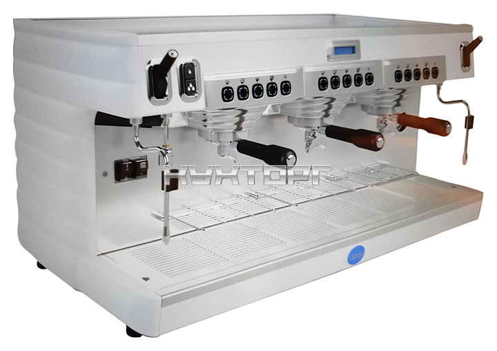 Кофемашина Carimali Bubble 3 Gr высокие группы используется в кофейнях, киосках, барах и ресторанах для приготовления кофе и напитков на его основе. Модель оснащена 5 кнопками управления на группу, буквенно-цифровым дисплеем, бойлером с теплообменником с термосифонической циркуляцией и площадкой для подогрева чашек из нержавеющей стали.