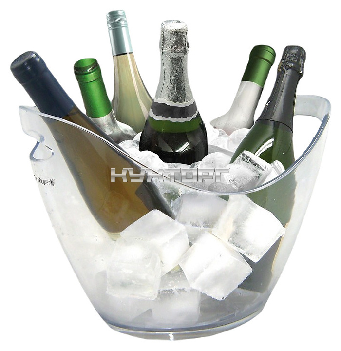 Ведро для шампанского Vin Bouquet FIE 029 используется на предприятиях общественного питания для подачи бутылок с шампанским к столу, а также поддержания их содержимого в охлажденном состоянии с помощью колотого льда. 2 отверстия по бокам для облегчения его мобильности позволяют наклонять бутылки с двух сторон. Изделие выполнено из пластика.