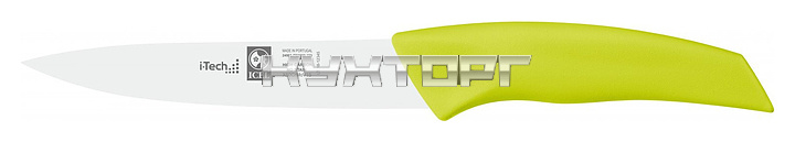 Кухонный нож ICEL I-Tech Utility knife 24503.IT03000.150 оснащен эргономичной ручкой салатового цвета из полипропилена, устойчивого к высоким температурам и внешнему воздействию, и заточенным вручную лезвием, выполненным из высококачественной нержавеющей стали X50CrMoV15 с добавлением хрома, молибдена и ванадия. Твердость стали, закаленной по специальной технологии, составляет более 56 HRC.