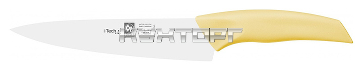 Поварской нож ICEL I-Tech Chef's knife 24301.IT10000.180 оснащен эргономичной ручкой желтого цвета из полипропилена, устойчивого к высоким температурам и внешнему воздействию, и заточенным вручную лезвием, выполненным из высококачественной нержавеющей стали X50CrMoV15 с добавлением хрома, молибдена и ванадия. Твердость стали, закаленной по специальной технологии, составляет более 56 HRC.