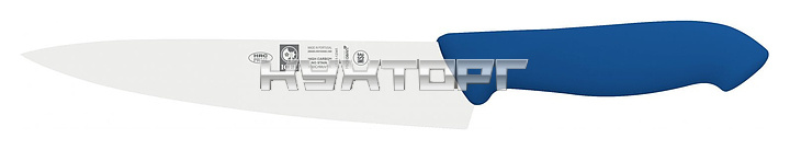 Поварской нож ICEL Horeca Prime Chef's knife 28600.HR10000.160 оснащен эргономичной ручкой синего цвета из приятного на ощупь пластика Proflex, устойчивого к высоким температурам и воздействию агрессивных элементов, и заточенным вручную лезвием, выполненным из высококачественной нержавеющей стали X50CrMoV15 с добавлением хрома, молибдена и ванадия. Твердость стали, закаленной по специальной технологии, составляет более 56 HRC. Ручка, изготовленная по системе инжекции, имеет специальную антибактериальную защиту Microban.