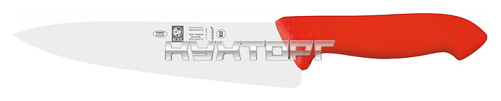 Поварской нож ICEL Horeca Prime Chef's knife 28400.HR10000.180 оснащен эргономичной ручкой красного цвета из приятного на ощупь пластика Proflex, устойчивого к высоким температурам и воздействию агрессивных элементов, и заточенным вручную лезвием, выполненным из высококачественной нержавеющей стали X50CrMoV15 с добавлением хрома, молибдена и ванадия. Твердость стали, закаленной по специальной технологии, составляет более 56 HRC. Ручка, изготовленная по системе инжекции, имеет специальную антибактериальную защиту Microban.
